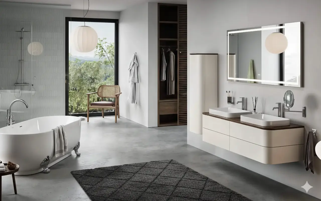 Steckdosen, Beleuchtung und Spiegelschrank-Anschlüsse – koordiniert mit der Gesamtplanung.